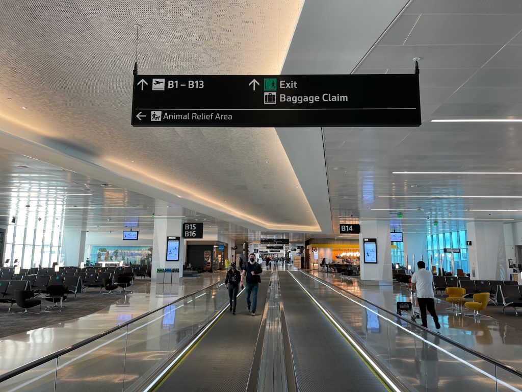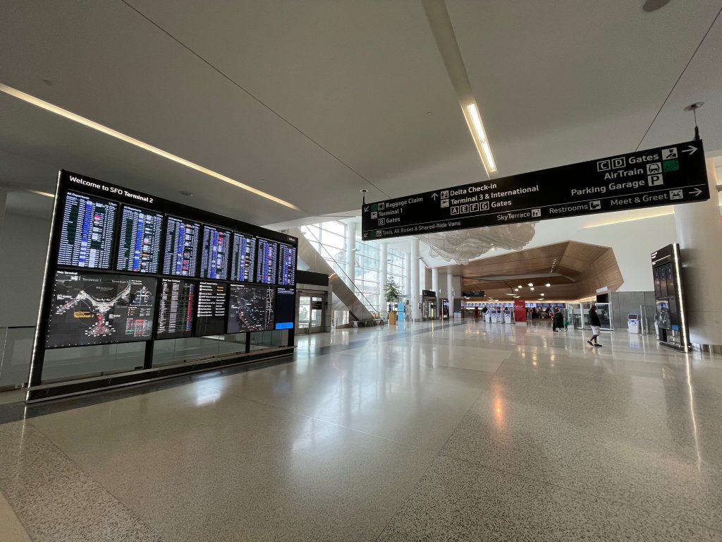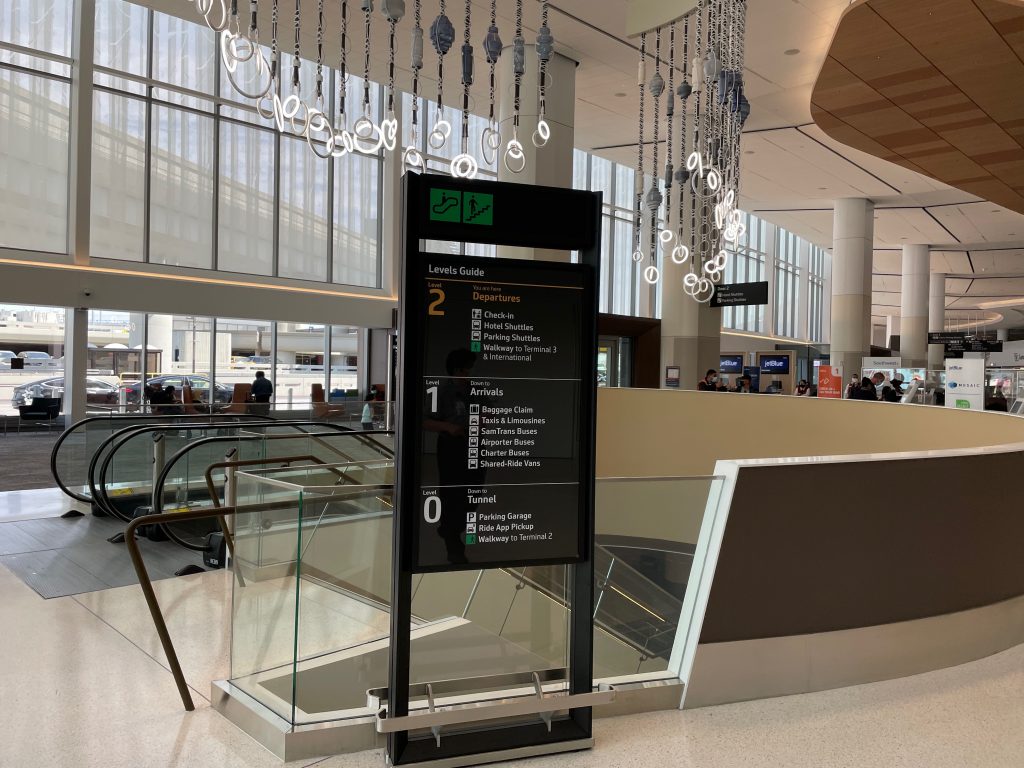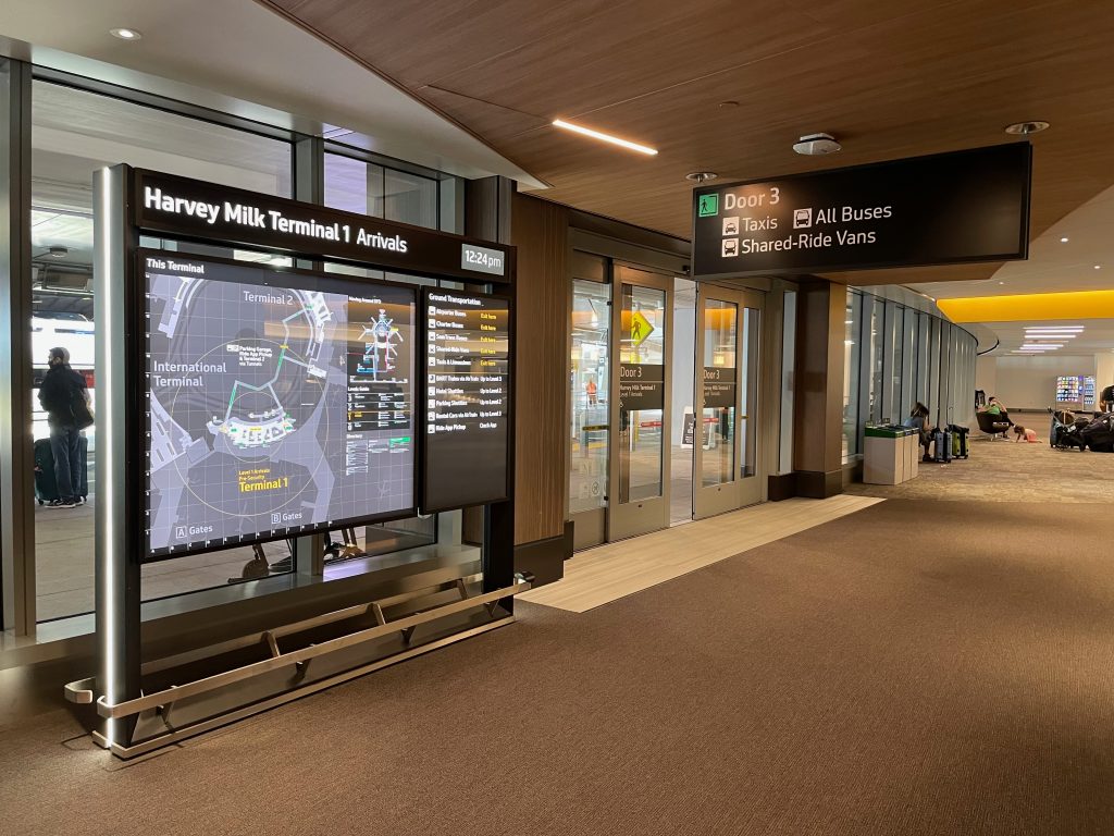 Bay Area airport holistic wayfinding and information design masterplan incorporating all aspects of passenger experience, public interfaces, physical placemaking and digital media.